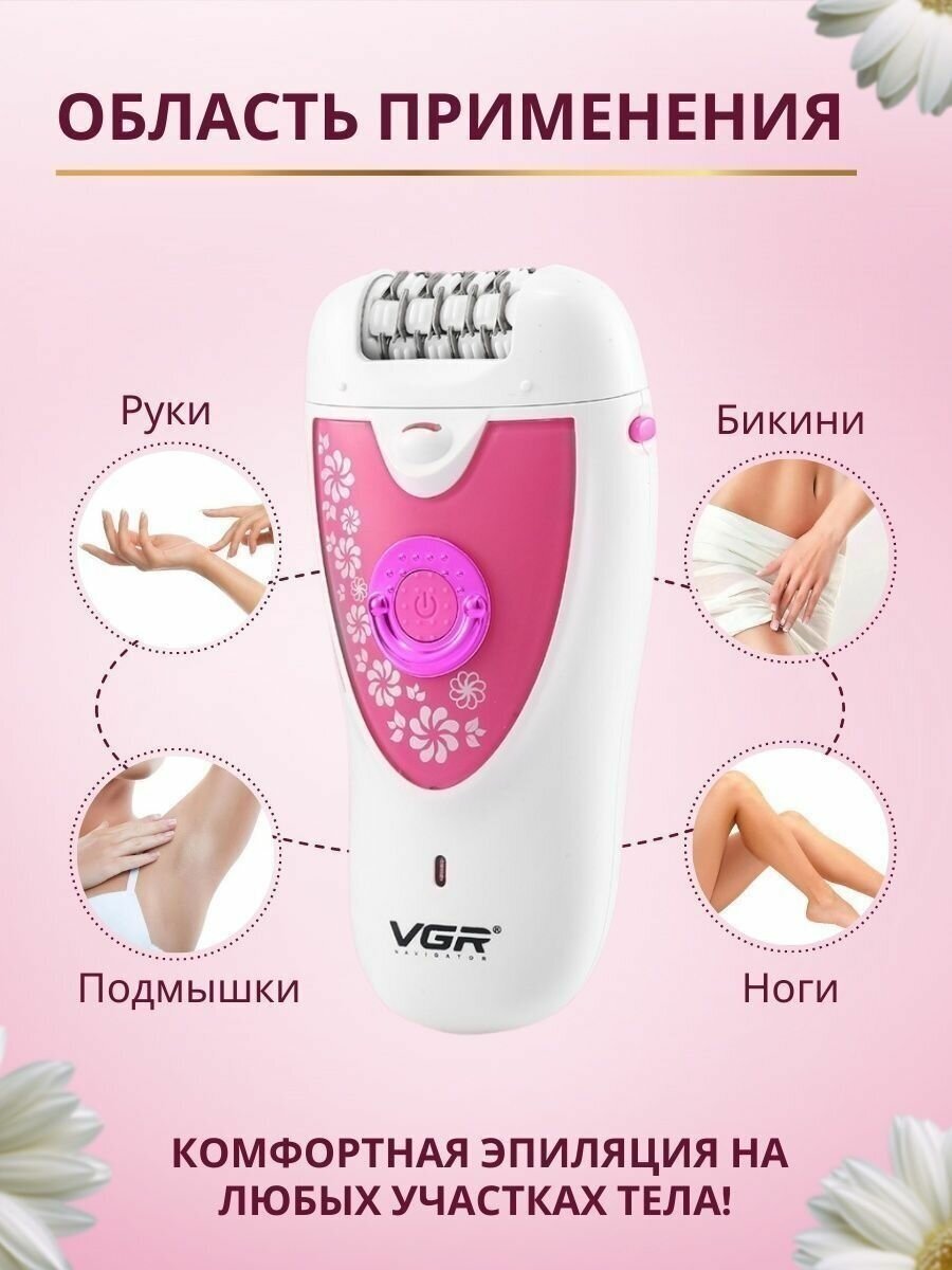 Type: epilator, power supply: battery/mains, additional functions: backlight, number of speeds: 2