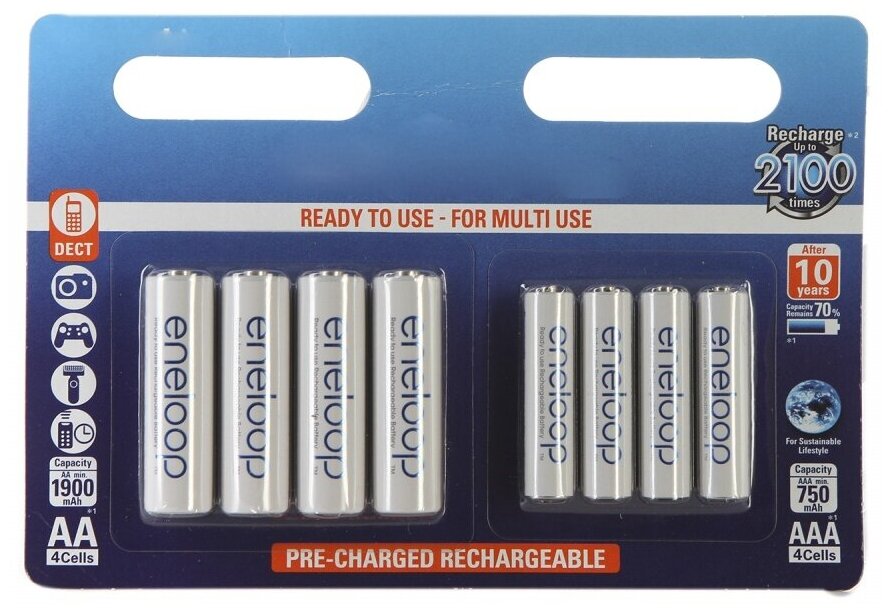 Battery AA+AAA - Panasonic Eneloop AA 1900 mAh 4 pieces + AAA 750 mAh Ni-MH 4 pieces BK-KJMCCE44E