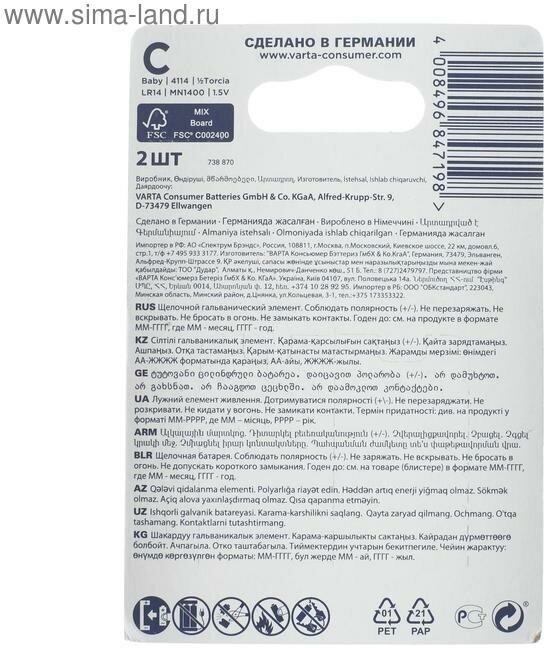 Size : C, technology: alkaline alkaline, operating voltage: 1.50 V, capacity: 1250 mAh