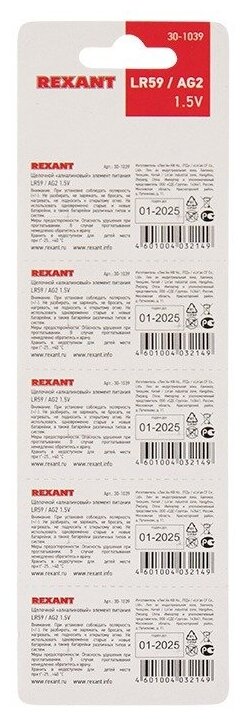 Battery Rexant 30-1039 LR59, AG2, LR726, G2, 196, GP96A, 396, SR726W 10 pieces