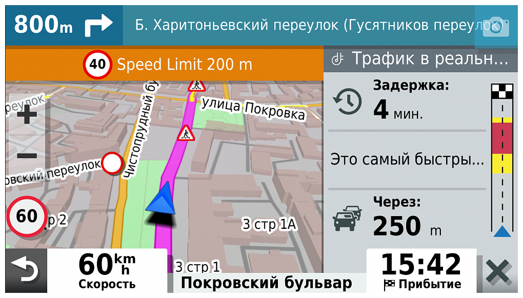 M - map, T - availability of information about traffic jams and traffic events in the TMC-receiver kit; Speed Camera Alerts, Dangerous Curves, Fatigue Warnings, POIs & Landmarks Ahead on Your Route, Route Guidance Through Preferred Cities/Streets, Lane