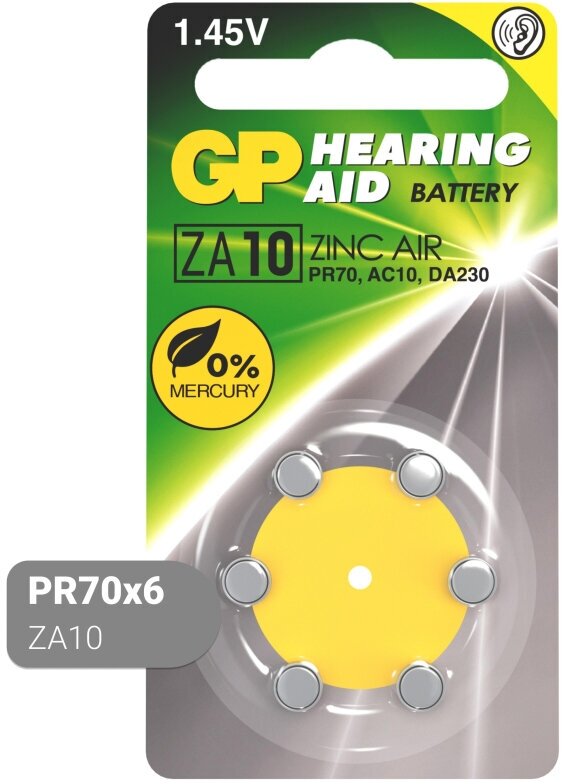 Size : PR70 ZA10, V10, DA230, technology: zinc air, operating voltage: 1.50 V