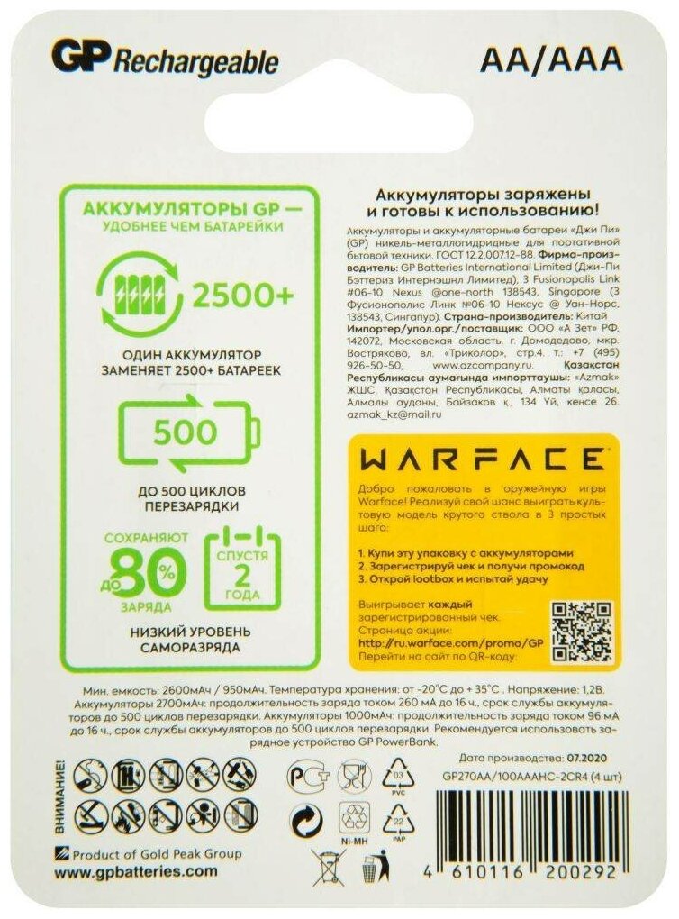 Battery GP Rechargeable 270AA+100AAAHC AA/AAA NiMH 2700mAh 4pcs