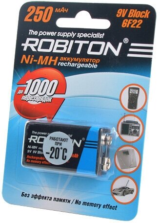 Battery Ni-Mh 250 mAh ROBITON 9V Krona 6F22 250
