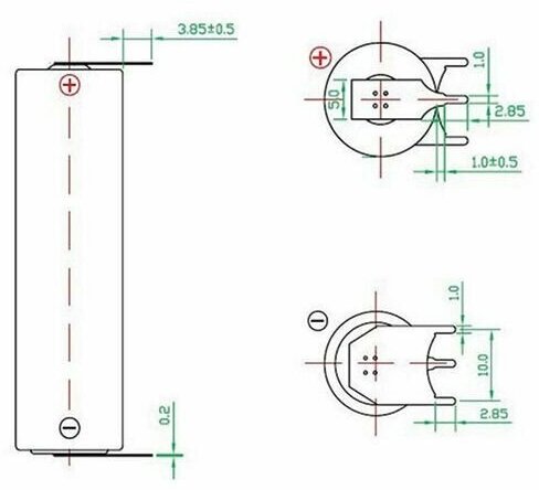 Battery Robiton ER14505-P1M2 AA with flat solder pins 3 legs PH1