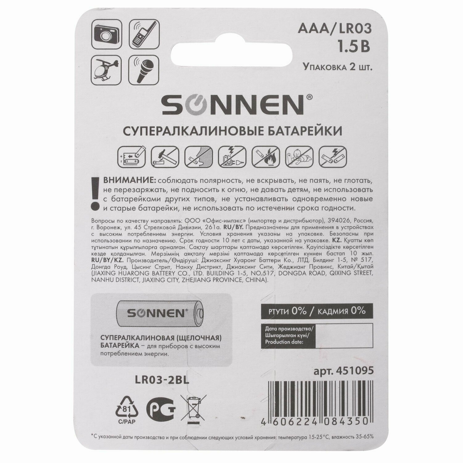 Battery SONNEN AAA LR03 maximum charge