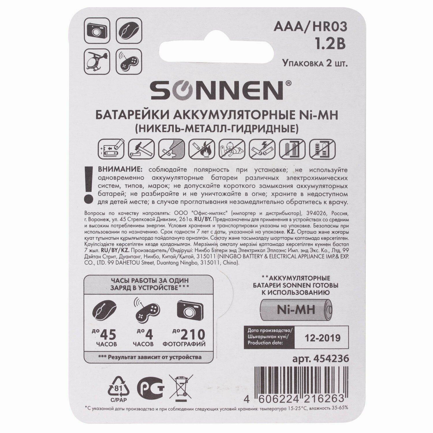 Frame size : AAA R03, LR03, FR03, HR03, ZR03, MN2400, technology: Ni-Mh, operating voltage: 1.20 V, capacity: 650 mAh