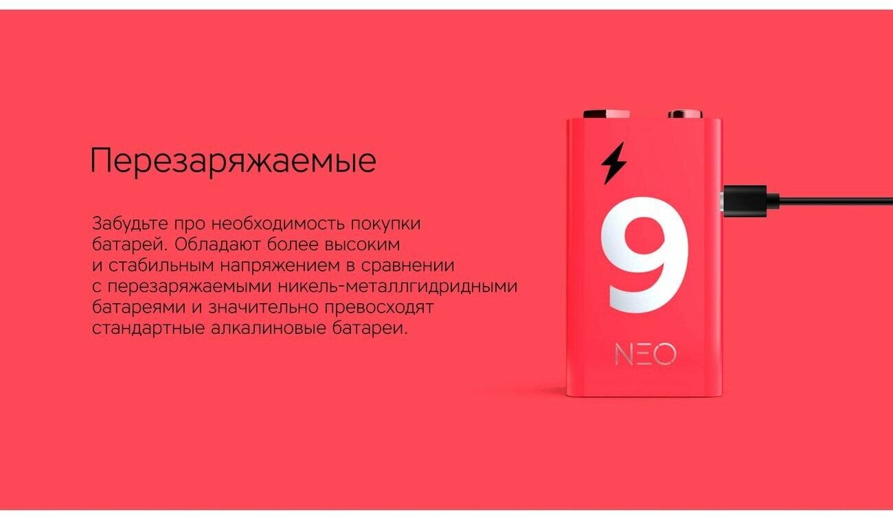 Size: Krona 6LR61, 6LF22, 6KR61, 1604A, technology: Li-Pol, operating voltage: 9 V, capacity: 400 mAh, features: built-in USB charging