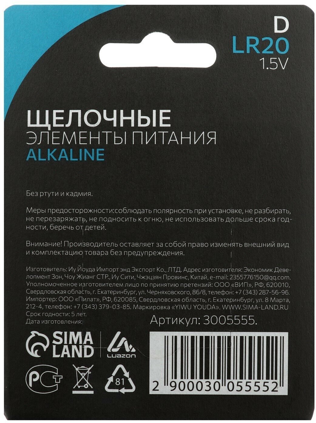 Size : D, technology: alkaline alkaline, operating voltage: 1.50 V