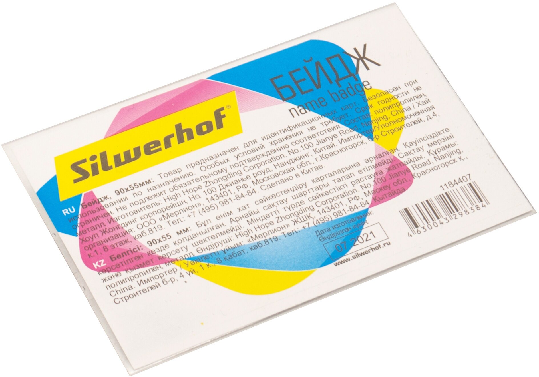 Badge Silwerhof 380012-00 90x56mm horizontal pin+clip