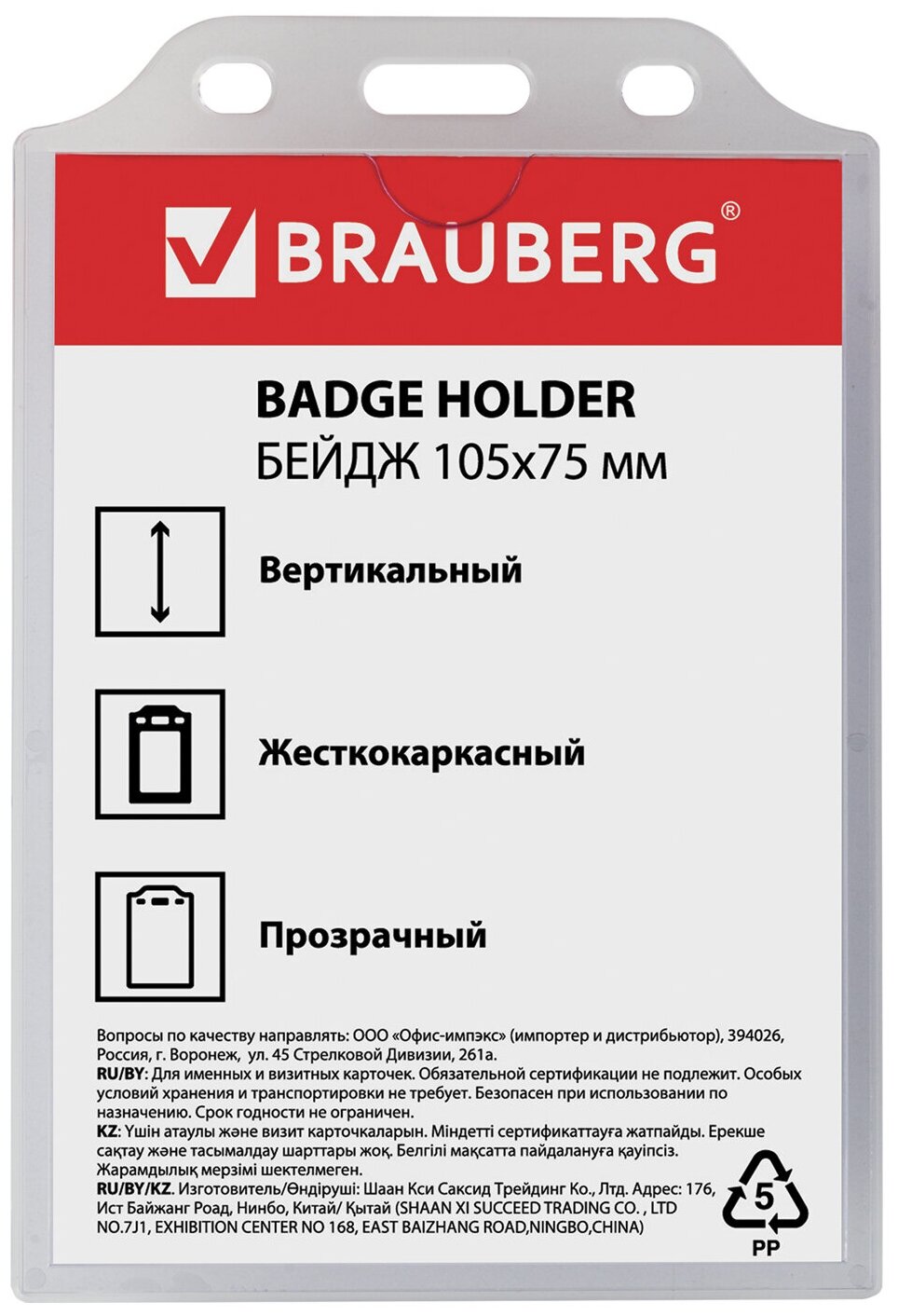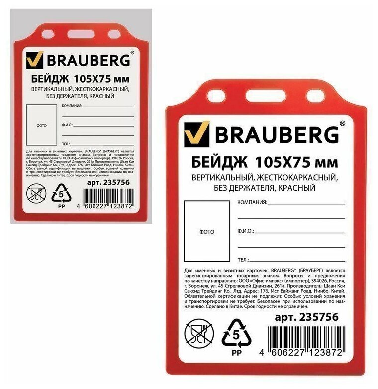 Badge BRAUBERG 235754-235758 121x81 mm
