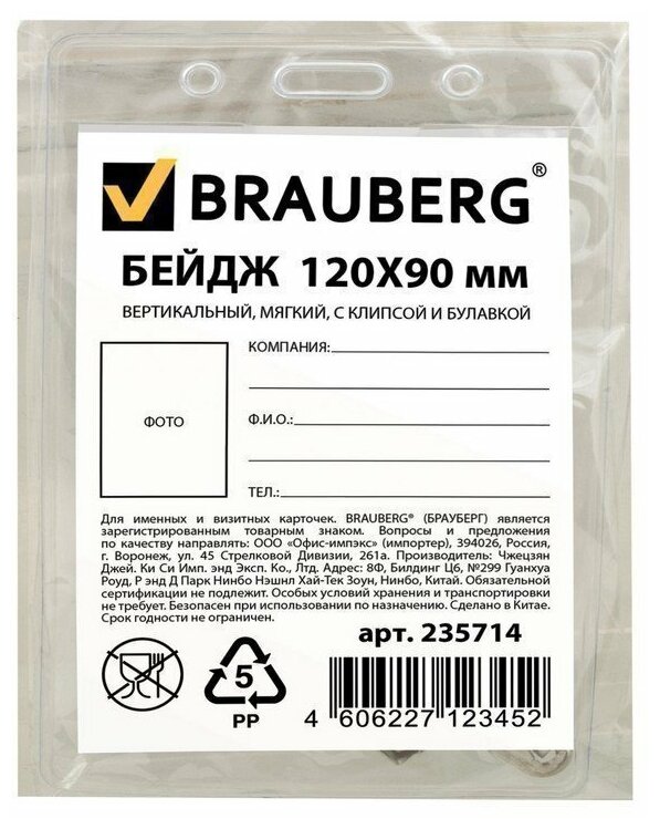 Badge BRAUBERG 235714 145x95 mm
