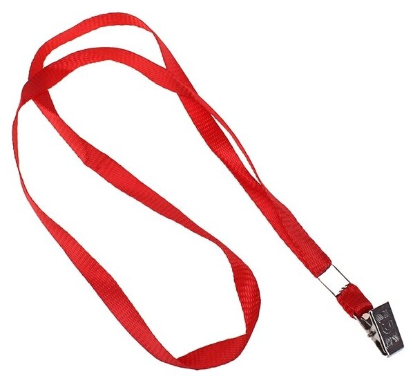 Badge ribbon, width-10 mm, length-80 cm, with metal clip, red