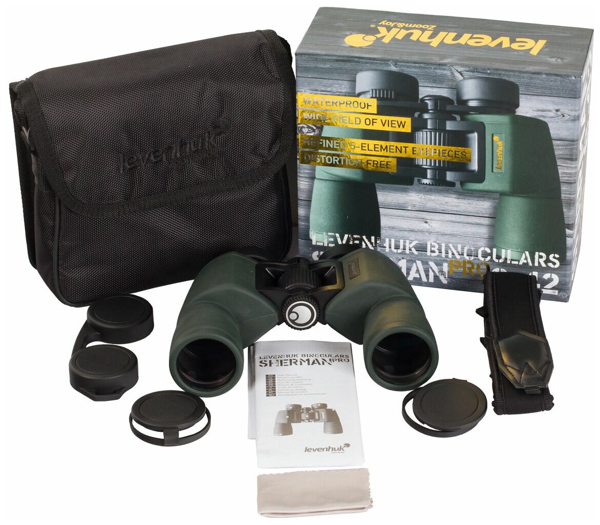 Lens and eyepiece caps, strap