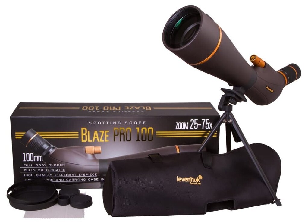 Type: Spotting Scope, Magnification: 75 x, Objective Diameter: 100 mm, Exit Pupil Diameter: 4 mm, Functions: Zoom, Features: Carrying Case/Pouch Included, Design: Nitrogen/Argon Filled, Water and Dust Resistant, H Mount