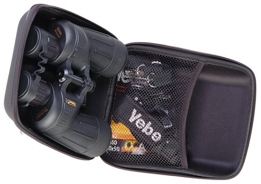 Type: binoculars, magnification: 10 x, objective diameter: 50 mm, exit pupil diameter: 5 mm, functions: pupillary distance adjustment, features: case/pouch included, design: aspherical lenses, azo filling
