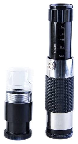 Two functions - monocular and microscope; focusing attachment - magnification from 25x to 50x, cord