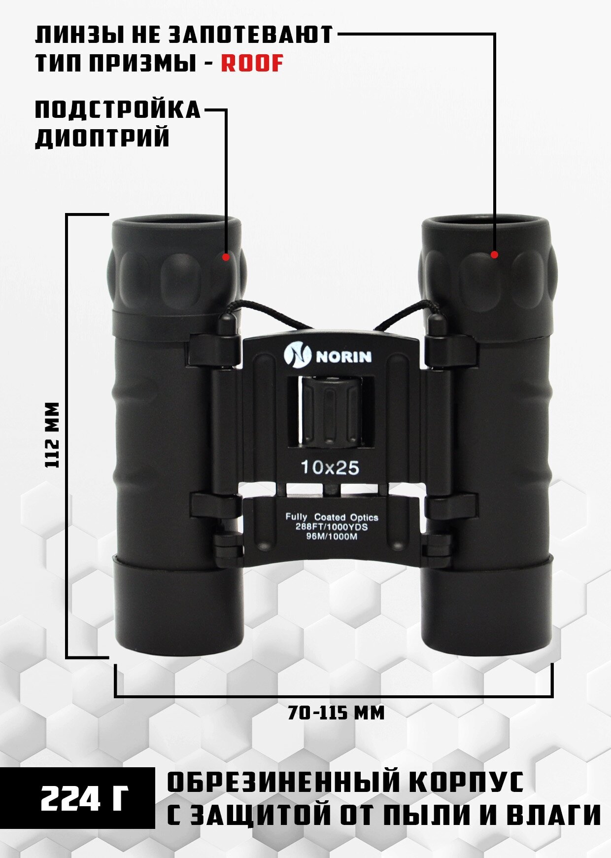 Type: binoculars, magnification: 10 x, lens diameter: 25 mm, functions: pupillary distance adjustment