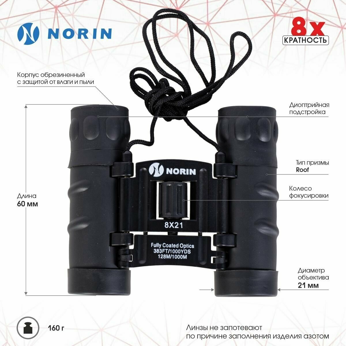 Type: binoculars, magnification: 8 x, objective lens diameter: 21 mm, exit pupil diameter: 2.60 mm, functions: pupillary distance adjustment, construction: moisture and dust protection, rubber housing, rubber eyecups