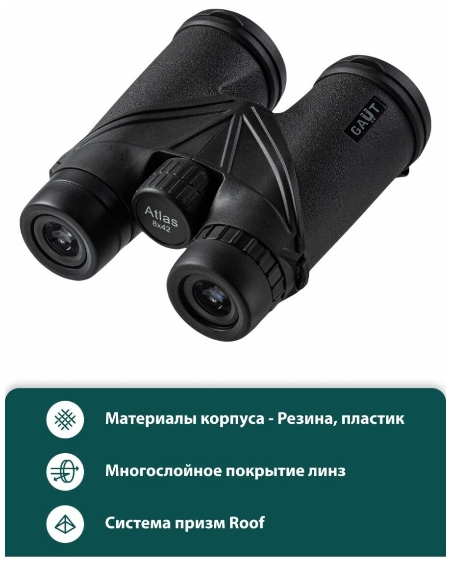 Type: binoculars, magnification: 8 x, objective lens diameter: 42 mm, exit pupil diameter: 5.25 mm, construction: rubber-coated housing