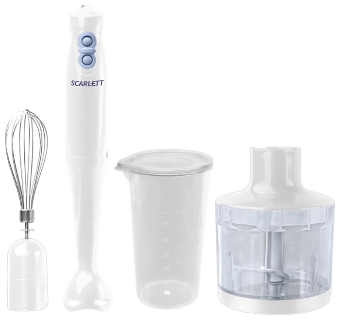 Type: submersible, maximum power: 300 W, material of the submersible part: plastic, attachments: whisk, chopper, set: measuring cup, modes: pulse, chopper capacity: 0.50 l, number of speeds