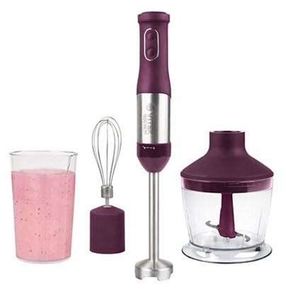 Type: submersible, maximum power: 1000 W, material of the submersible part: metal, attachments: whisk for whipping, for mashing, grinder, included: measuring cup, additional functions: ice pick, smooth speed