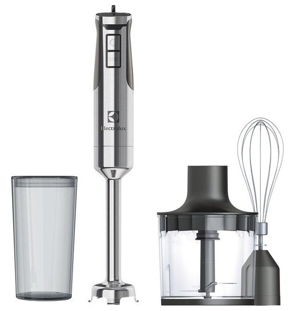 Type: submersible, maximum power: 700 W, material of the submersible part: metal, attachments: whisk, chopper, included: measuring cup, additional functions: stepless speed control, modes: turbo