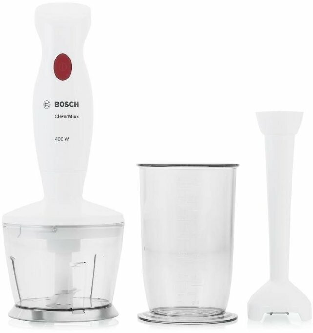 Type: submersible, maximum power: 400 W, submersible part material: plastic, jug material: plastic, attachments: chopper, grinder, blender nozzle, set includes: measuring cup, Chopper, amount of speed