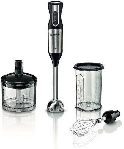 Type: submersible, maximum power: 800 W, submersible part material: metal, jug material: plastic, attachments: whisk, chopper, For mixing, blender nozzle, set includes: measuring cup, grinder