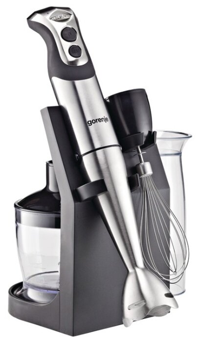 Type: submersible, maximum power: 800 W, material of the submersible part: metal, attachments: whisk, grinder, included: measuring cup, modes: pulsed