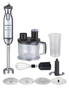 Type: submersible, maximum power: 800 W, material of the submersible part: metal, nozzles: whisk for whipping, slicing disc, chopper, grater, included: measuring cup, additional functions: smooth r