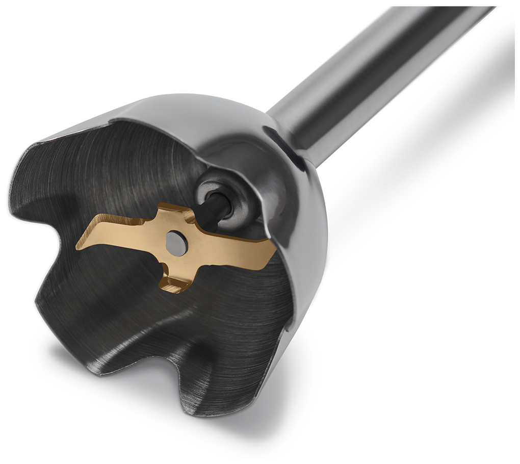 Type: submersible, maximum power: 1000 W, material of the submersible part: metal, attachments: whisk for whipping, for mashing, grinder, included: measuring cup, additional functions: ice pick, smooth speed