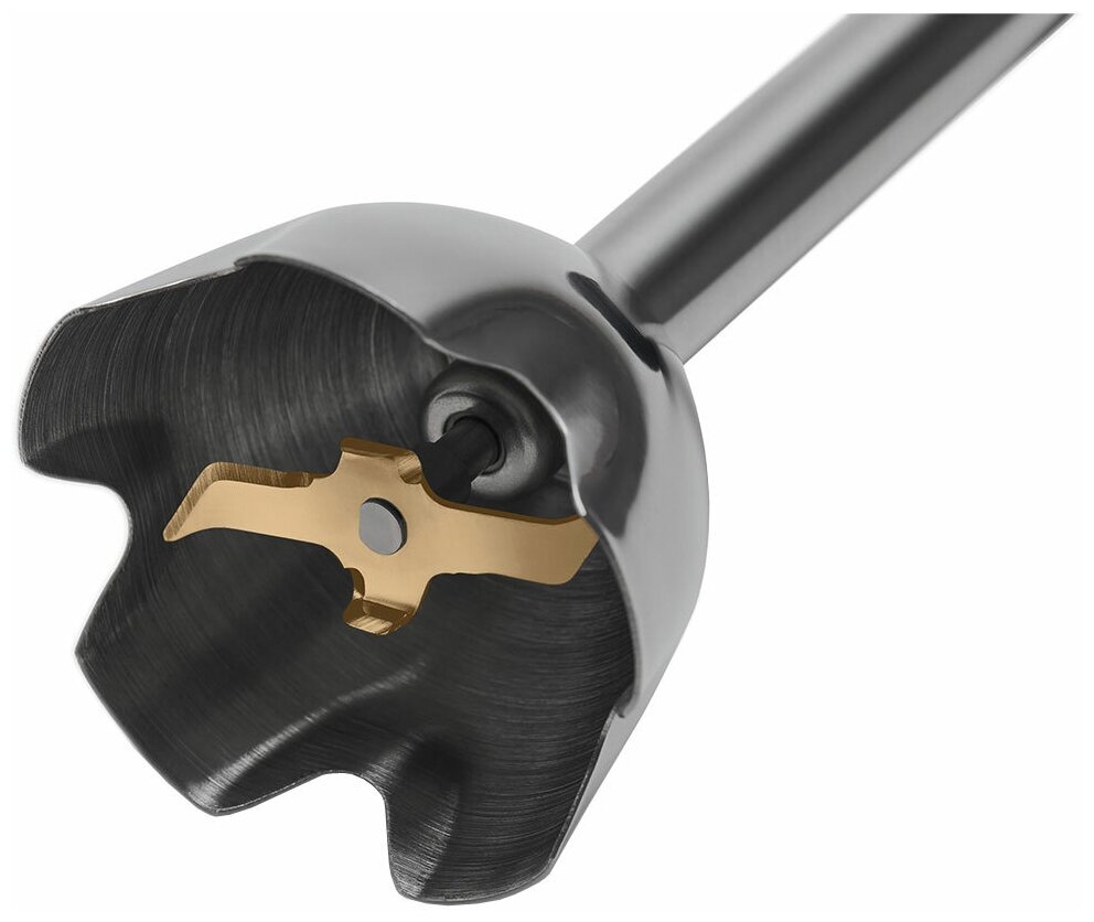 Type: submersible, maximum power: 1000 W, material of the submersible part: metal, attachments: whisk for whipping, for mashing, grinder, included: measuring cup, additional functions: ice pick, smooth speed