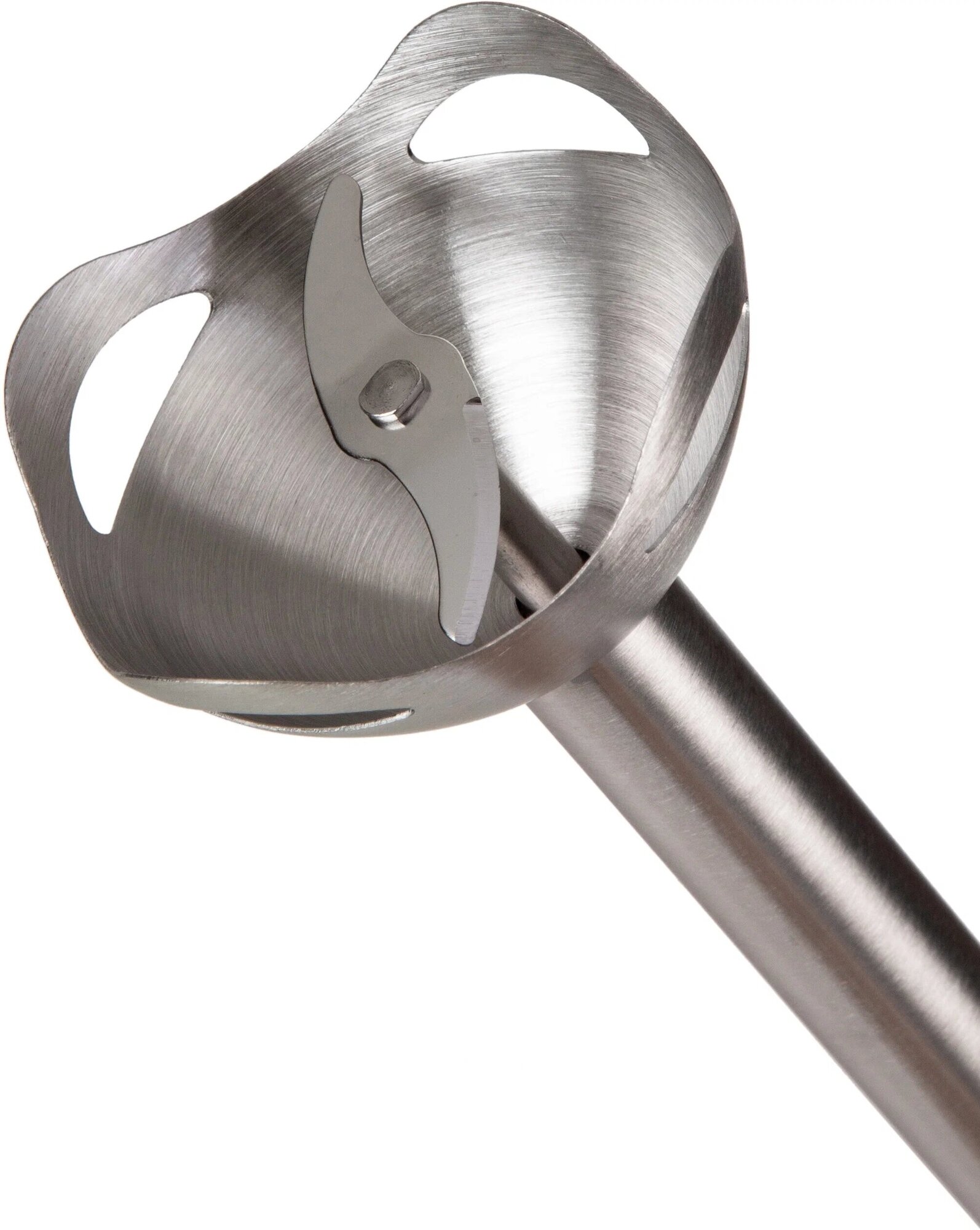Type: submersible, maximum power: 1000 W, material of the submersible part: metal, attachments: whisk for whipping, for mashing, grinder, included: measuring cup, additional functions: ice pick, smooth speed