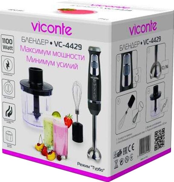 Type: submersible, maximum power: 1100 W, material of the immersion part: metal, attachments: whisk, chopper, modes: turbo mode, chopper capacity: 0.40 l