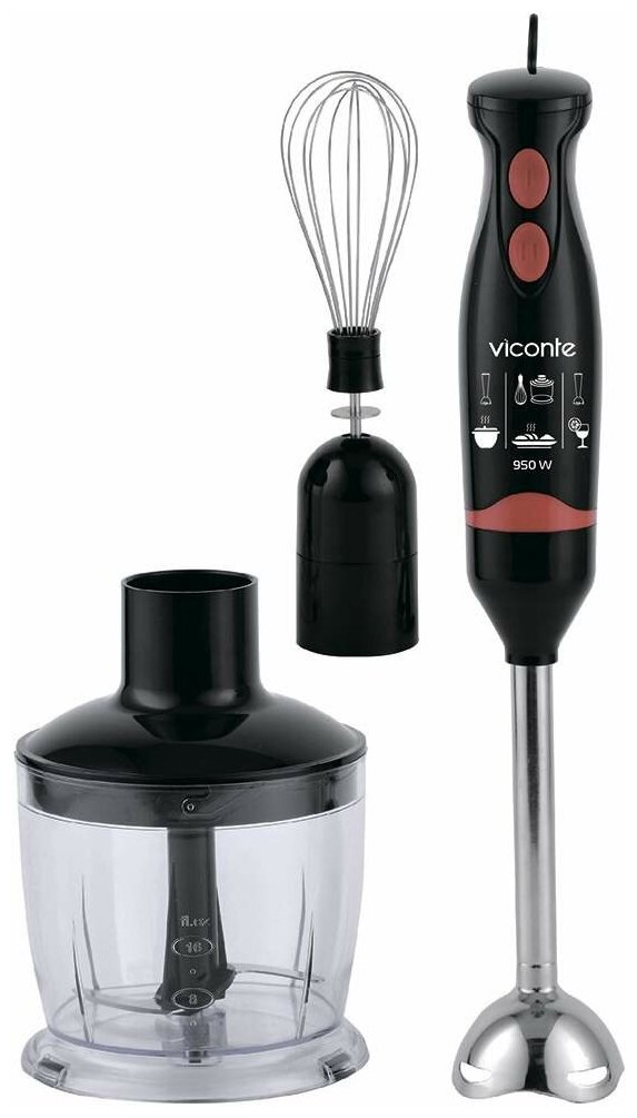 Type: submersible, maximum power: 950 W, submersible material: metal, attachments: whisk, chopper, additional functions: stepless speed control, chopper capacity: 0.50 l