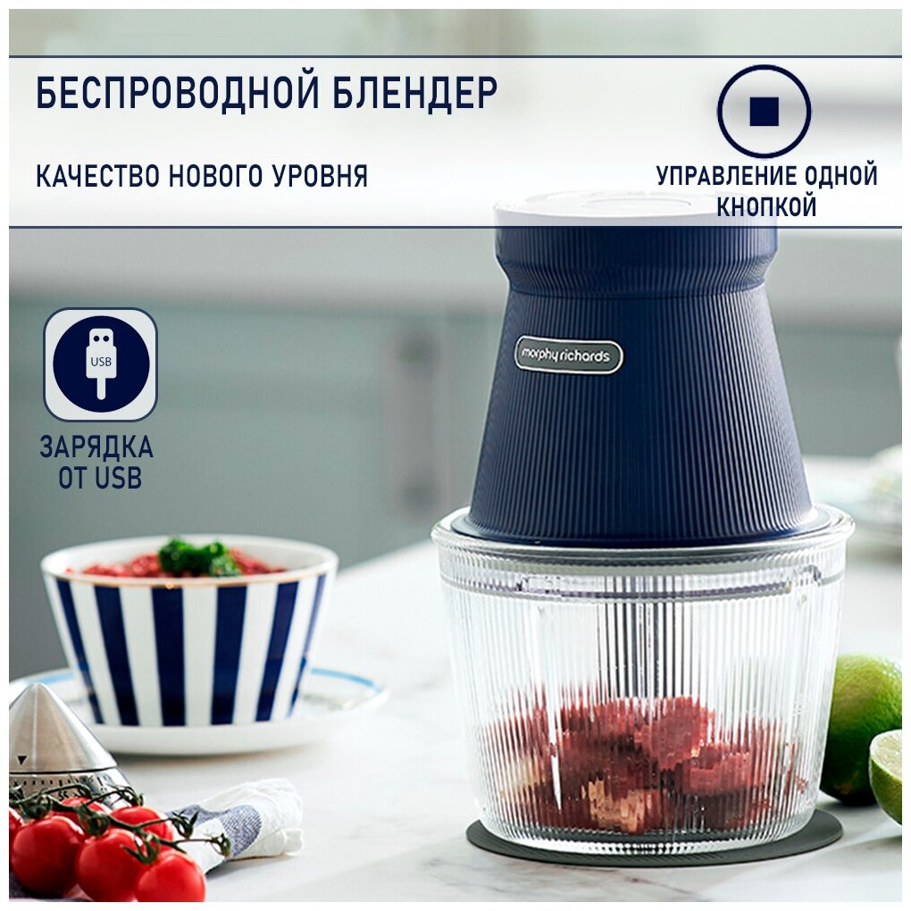 Chopper multi-cutter USB wireless for baby food Morphy Richards, blue