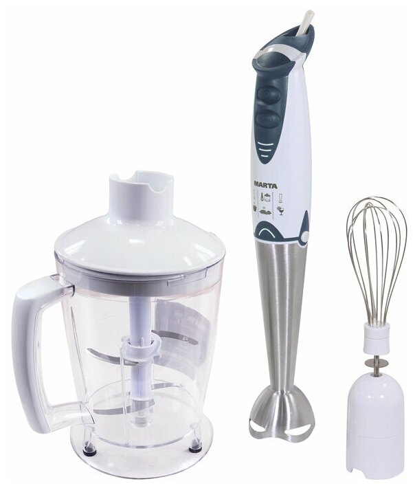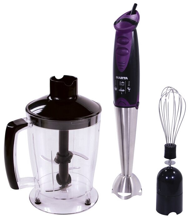 Type: submersible, maximum power: 600 W, submersible material: metal, attachments: whisk, chopper, modes: turbo mode, chopper capacity: 1.25 l, number of speeds: 2, design features