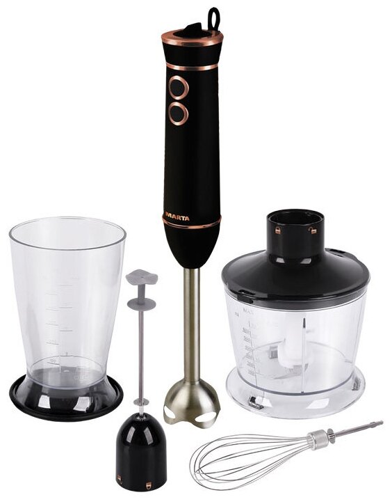 Type: submersible, maximum power: 800 W, material of the submersible part: metal, nozzles: whisk, grinder, included: measuring cup, additional functions: smooth speed adjustment, modes: turbo