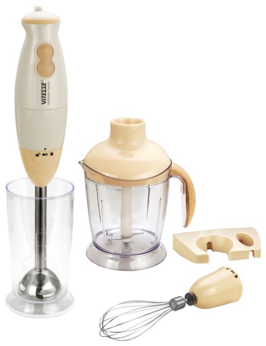 Type: submersible, maximum power: 380 W, submersible part material: metal, attachments: whisk, chopper, set includes: measuring cup, chopper capacity: 1.25 l, number of speeds: 2, cons features
