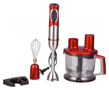 Type: submersible, maximum power: 1000 W, material of the submersible part: metal, attachments: whisk for whipping, for mashing, grinder, included: measuring cup, additional functions: ice pick, smooth speed