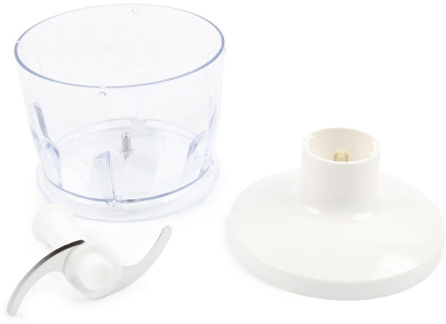 Type: submersible, maximum power: 700 W, material of the submersible: plastic, attachments: whisk, chopper, chopper capacity: 0.60 l, number of speeds: 1