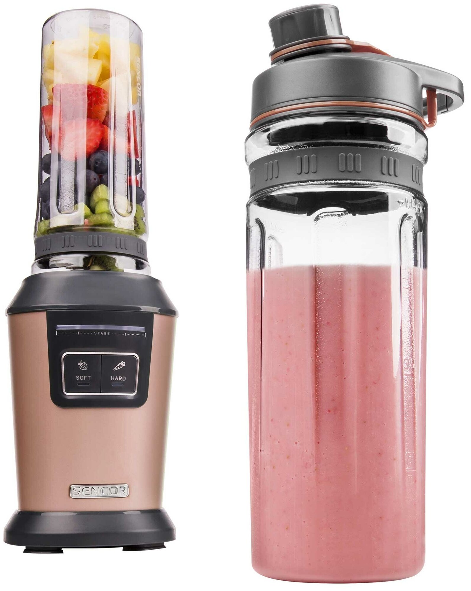 Travel bottles of 0.6 l; 2 programs 45 / 60 seconds