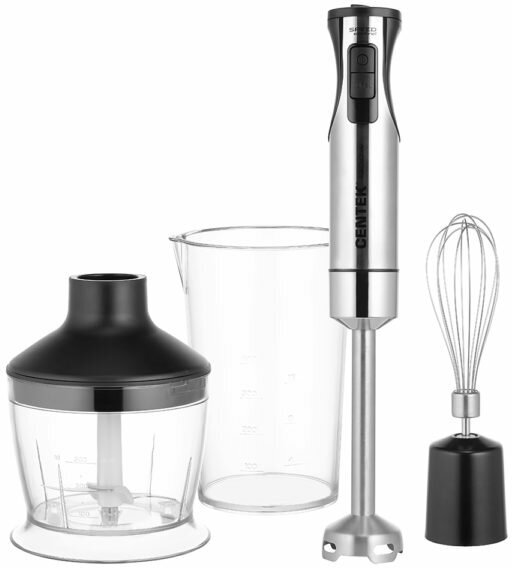Type: submersible, maximum power: 1000 W, material of the submersible part: metal, attachments: whisk for whipping, for mashing, grinder, included: measuring cup, additional functions: ice pick, smooth speed