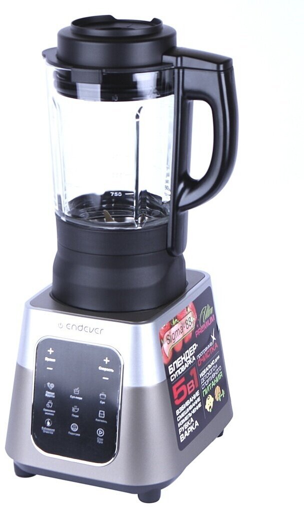 8 automatic programs: vegetables / fruits, soup, puree soup, soy milk, puree, cocktail, cleaning, heating; knife rotation speed: up to 30,000 rpm; measuring scale; high-strength glass bowl - easy to disassemble, assemble and