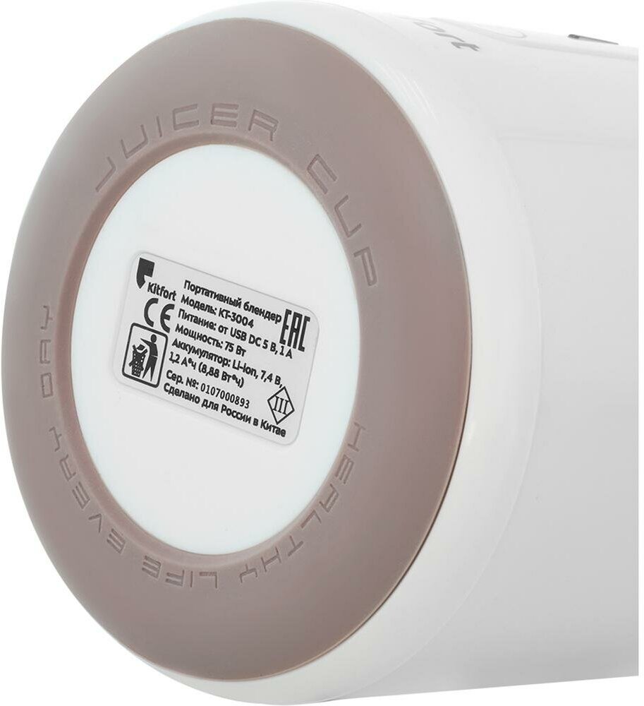 Bottle material glass, bottle working capacity 0.33 l, battery life 20 cycles of 25 seconds, charging time 2-3 hours, Li-ion battery, 7.4 V, 1.2 Ah