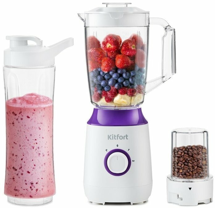 Type: stationary, maximum power: 350 W, pitcher material: plastic, attachments: chopper, coffee grinder, grinder, grater, included: travel bottle, additional functions: ice pick, modes: impulse, capacity