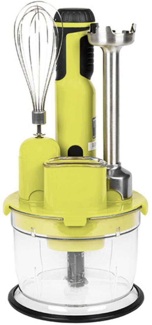 Type: submersible, maximum power: 600 W, submersible material: metal, attachments: whisk, slicing disc, dicing, chopper, grater, set includes: measuring cup, add-on