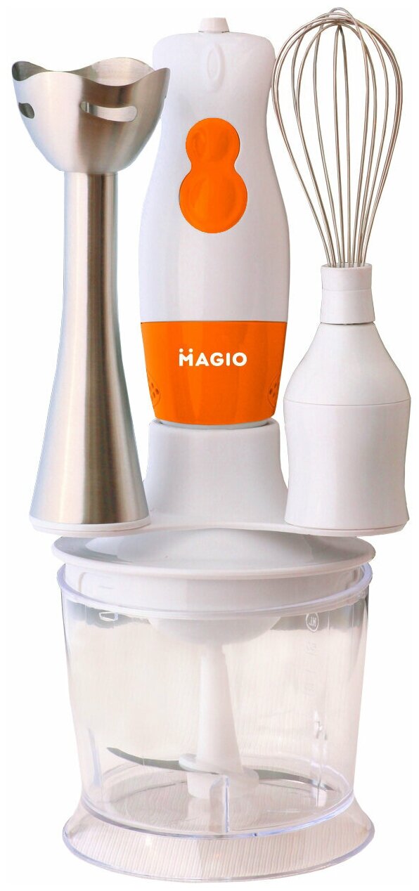 Type: submersible, maximum power: 350 W, material of the submersible part: metal, attachments: whisk, grinder, number of speeds: 2