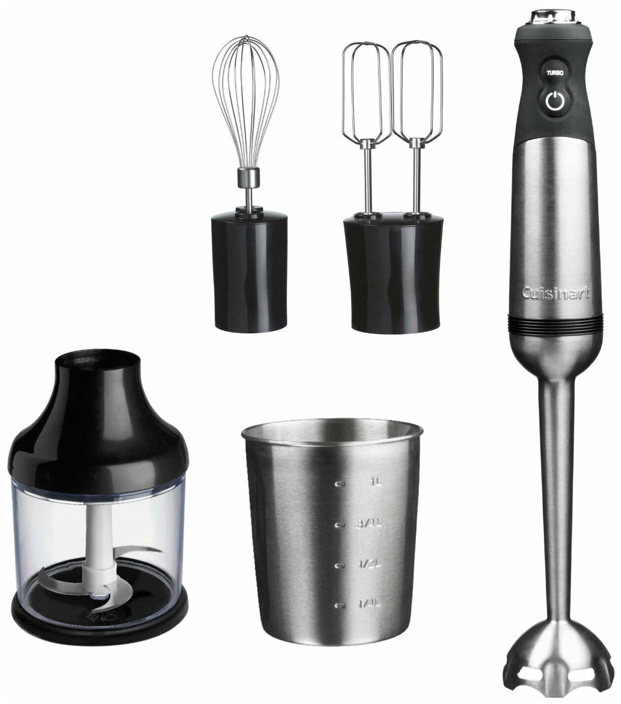 Type: submersible, maximum power: 700 W, material of the submersible part: metal, attachments: whisk, chopper, included: measuring cup, additional functions: stepless speed control, modes: turbo